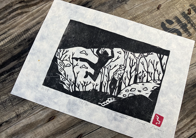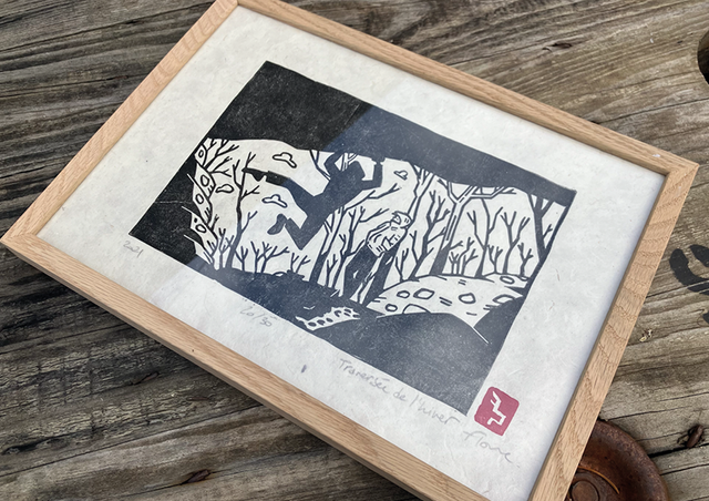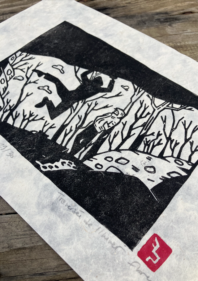 Linogravure noir&blanc, papier népalais naturel Lokta, A4 (vendu sans cadre)